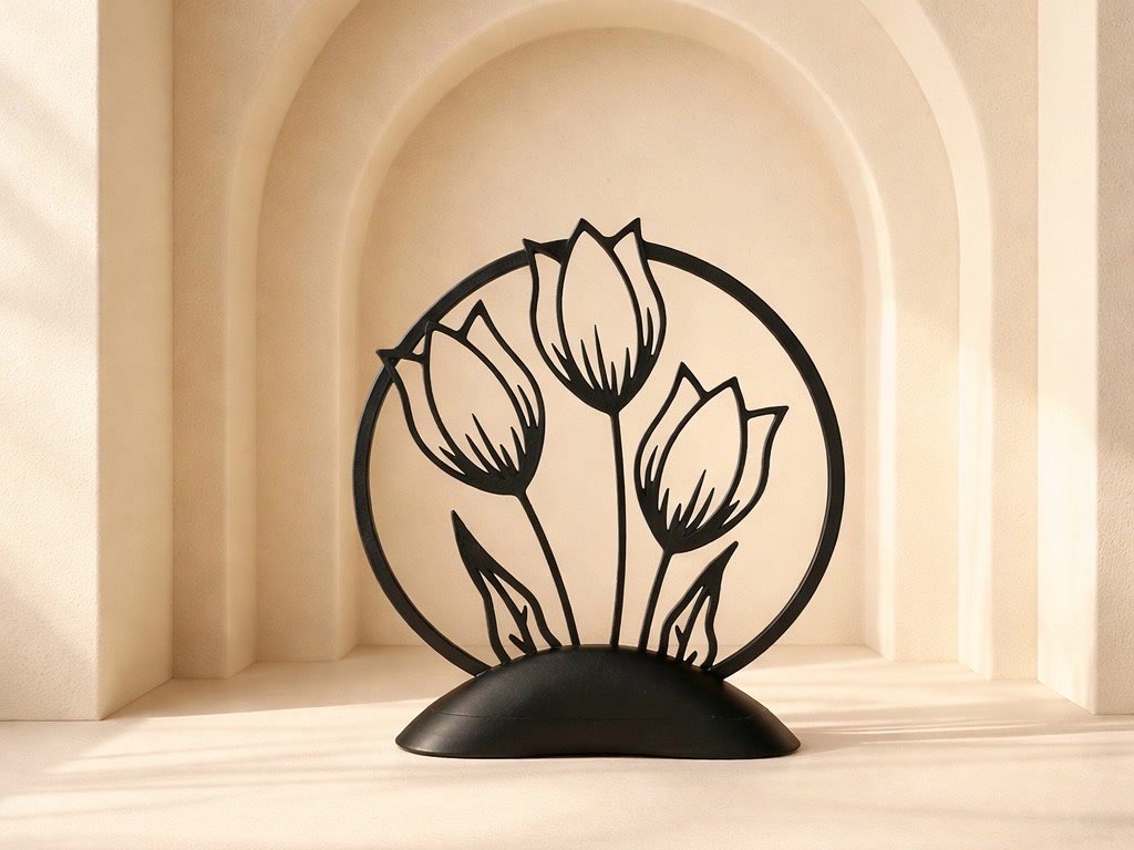 Jemná dekorace s motivem tulipánů, která vnese do interiéru svěží jarní atmosféru a lehkost. Minimalistické linie a jednoduché provedení působí elegantně a díky nadčasovému designu se snadno hodí do moderních i přírodně laděných interiérů.