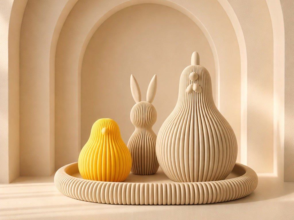 Minimalistická dekorace inspirovaná jarní a velikonoční atmosférou, která vnese do interiéru jemnost a přírodní eleganci. Díky čistým liniím a modernímu žebrovanému designu působí dekorace stylově a nadčasově.