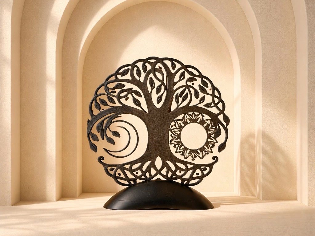 Symbolická dekorace propojující motiv stromu života, měsíce a slunce, která představuje rovnováhu, harmonii a spojení přírody s energií světla. Jemné detaily a minimalistické provedení vytváří elegantní doplněk, který zaujme svou jednoduchostí i hloubkou významu.
